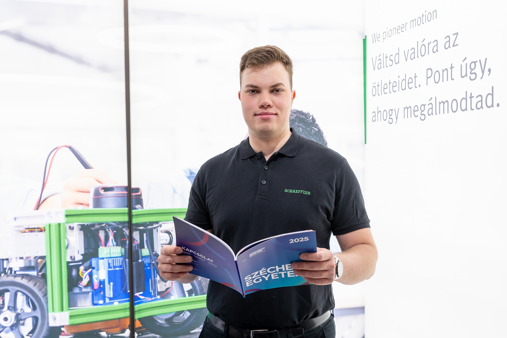 Bicsák Barnabás Vasszécsenyből érkezett a győri egyetemre, ahol másodéves duális hallgatóként járműmérnöknek tanul, gyakorlatát pedig a szombathelyi Schaeffler Savaria Kft.-nél végzi.