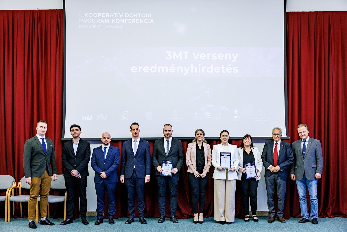 A rendezvény részeként került sor a 3MT versenyre, amely az angol „three-minute thesis” (háromperces értekezés) rövidítése: a doktoranduszok három perc alatt mutathatták be kutatásaikat. A rangos megmérettetésre a több tucat induló közül a legjobb hét pályázót választotta ki a zsűri, amelynek tagjait olyan neves személyiségek alkották, mint prof. dr. Szendrő Péter, a Kooperatív Doktori Kollégium, prof. dr. Benyó Zoltán, az Országos Doktori Tanács, Lencsés Gergő, a Duális Képzési Tanács és Molnár Dániel, a Doktoranduszok Országos Szövetségének elnöke, valamint dr. Szabó István, a HUN-REN Magyar Kutatási Hálózat vezérigazgató-helyettese. A debreceni mellett a Széchenyi István Egyetem volt az egyetlen, amelynek két doktorandusza – Péter Brúnó és dr. Tinka Domonkos – került a legjobbak közé.